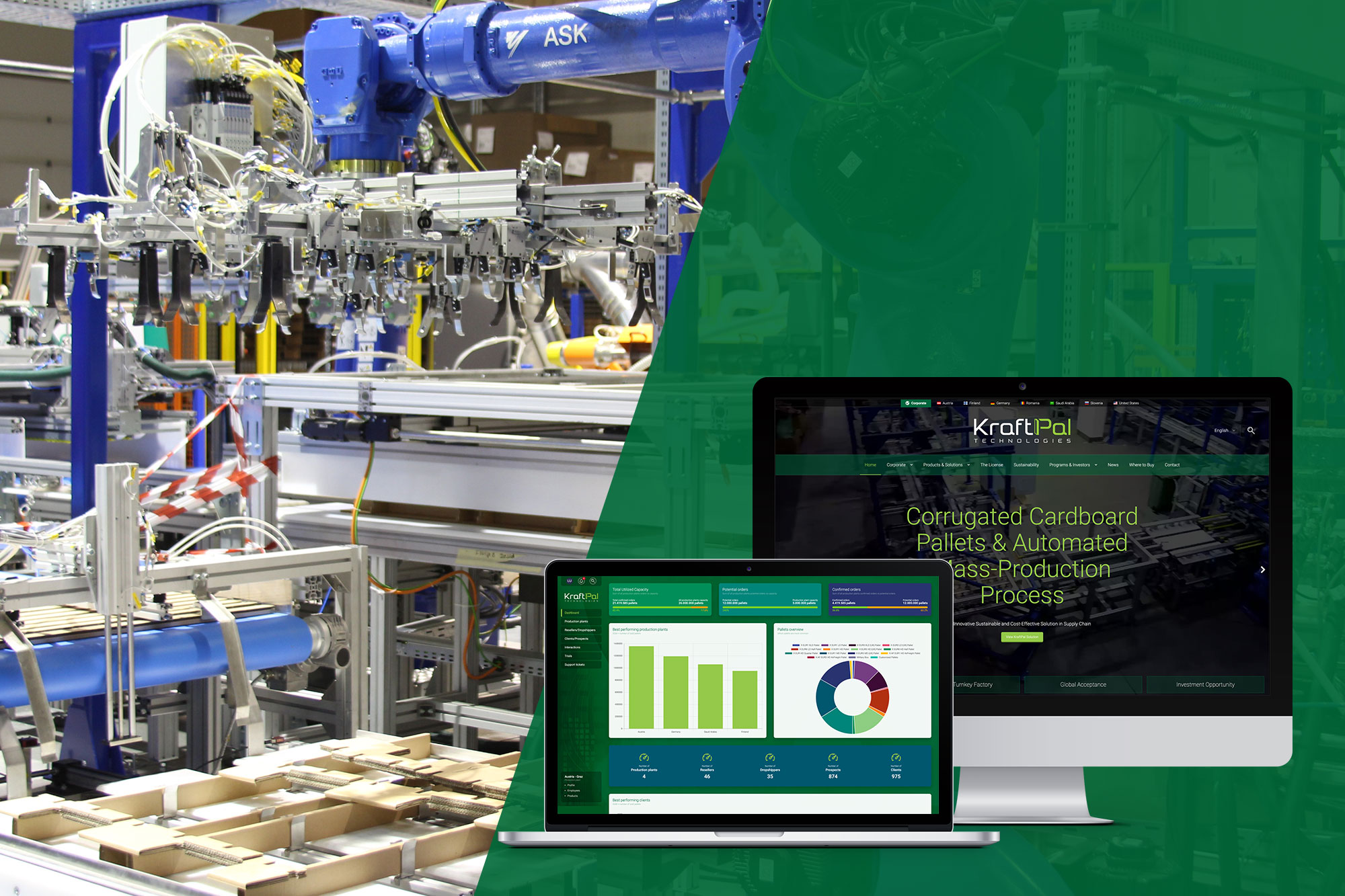 We assist in R&D, implementation and after sales service of the fully automated mass production line (Palletonator) used by KraftPal licensees to manufacture corrugated pallets. The modular pallet manufacturing process can be fully customized and tailored to the customer’s needs. At the same time, we worked on the implementation of Big Data Mining, machine learning and AI to fully automate all key processes in the company – from sales to the ordering process to the production processes.
